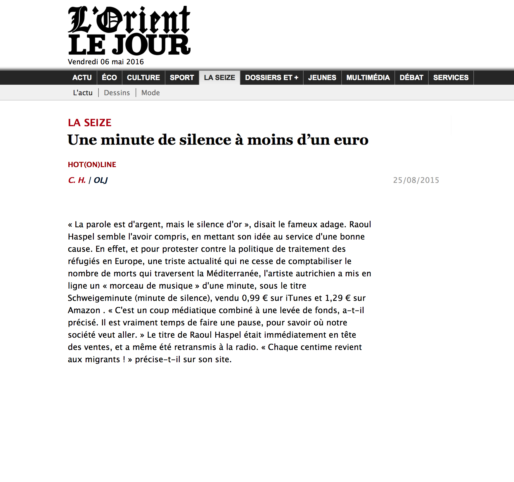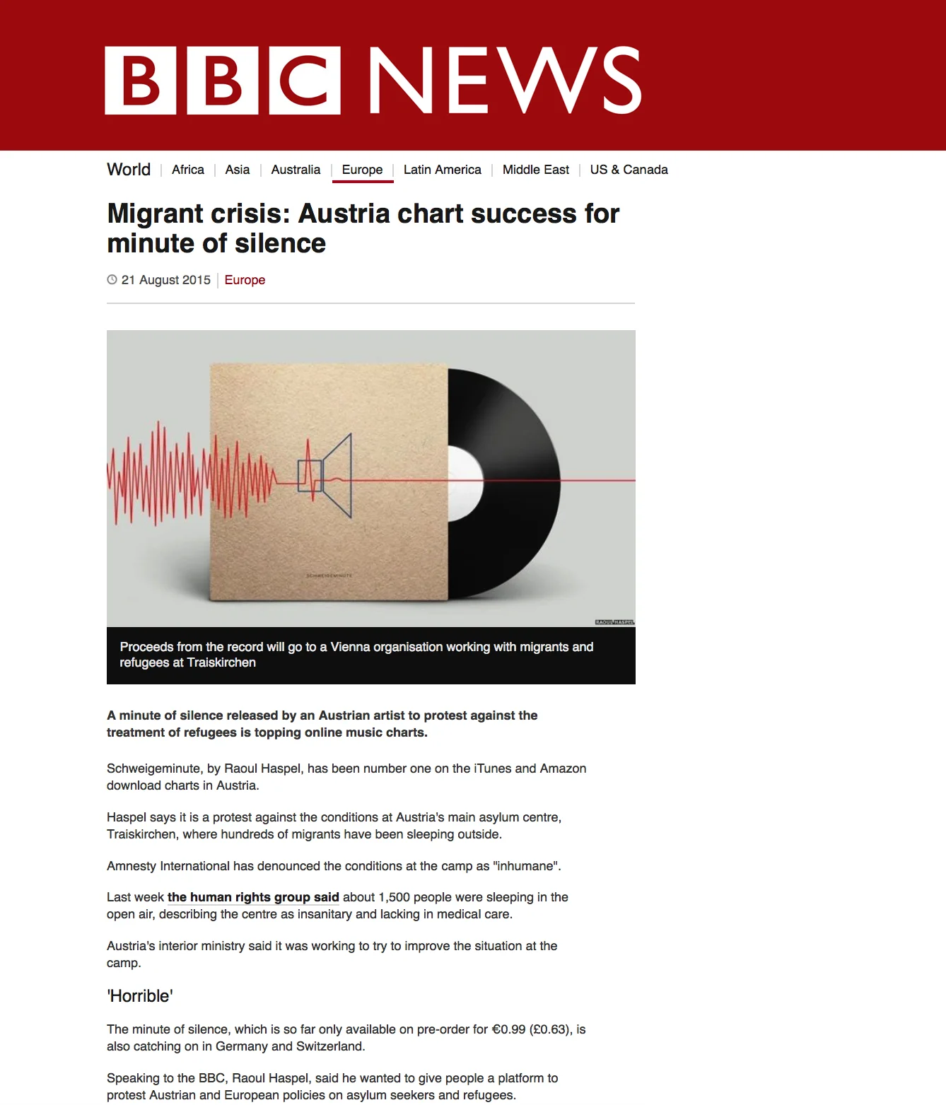 A minute of silence released by an Austrian artist to protest against the treatment of refugees ...