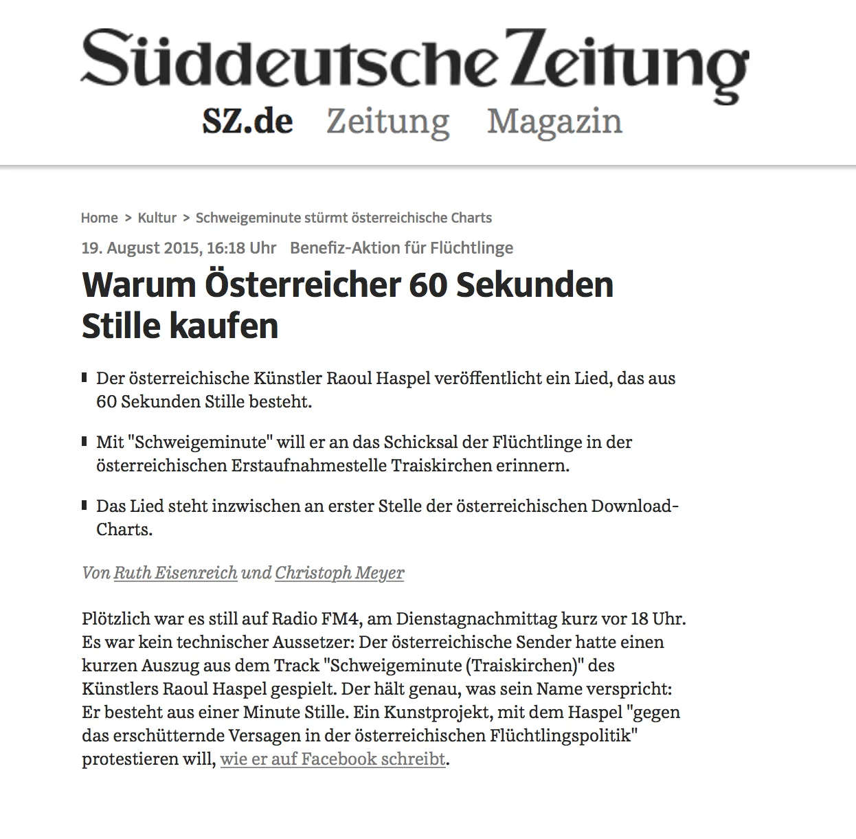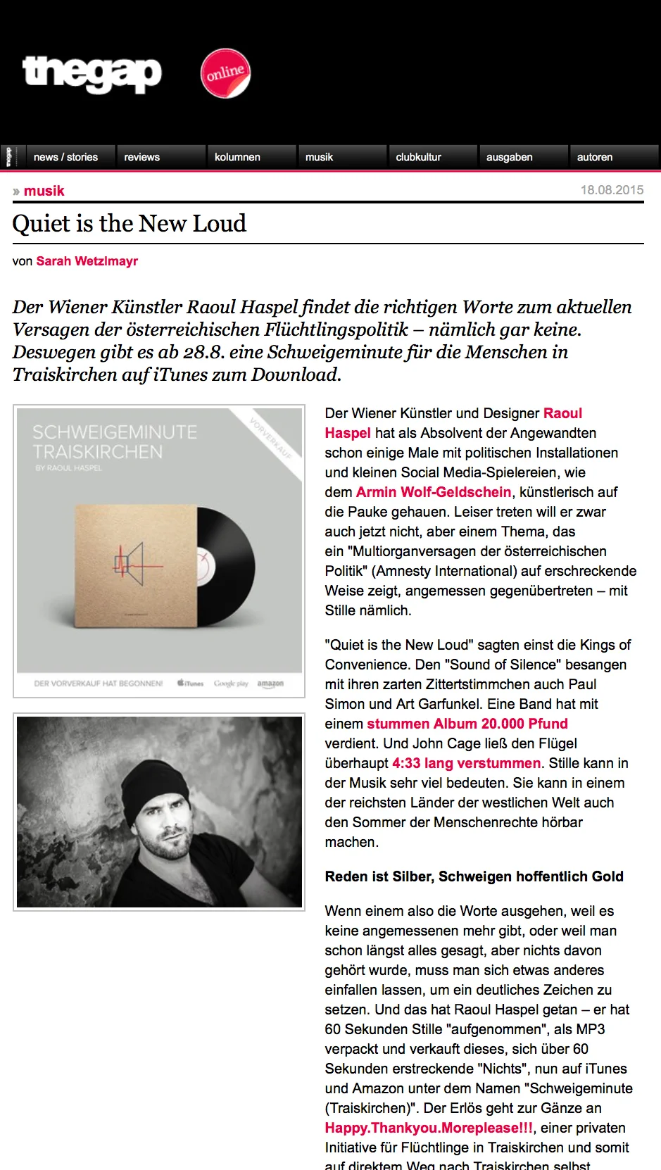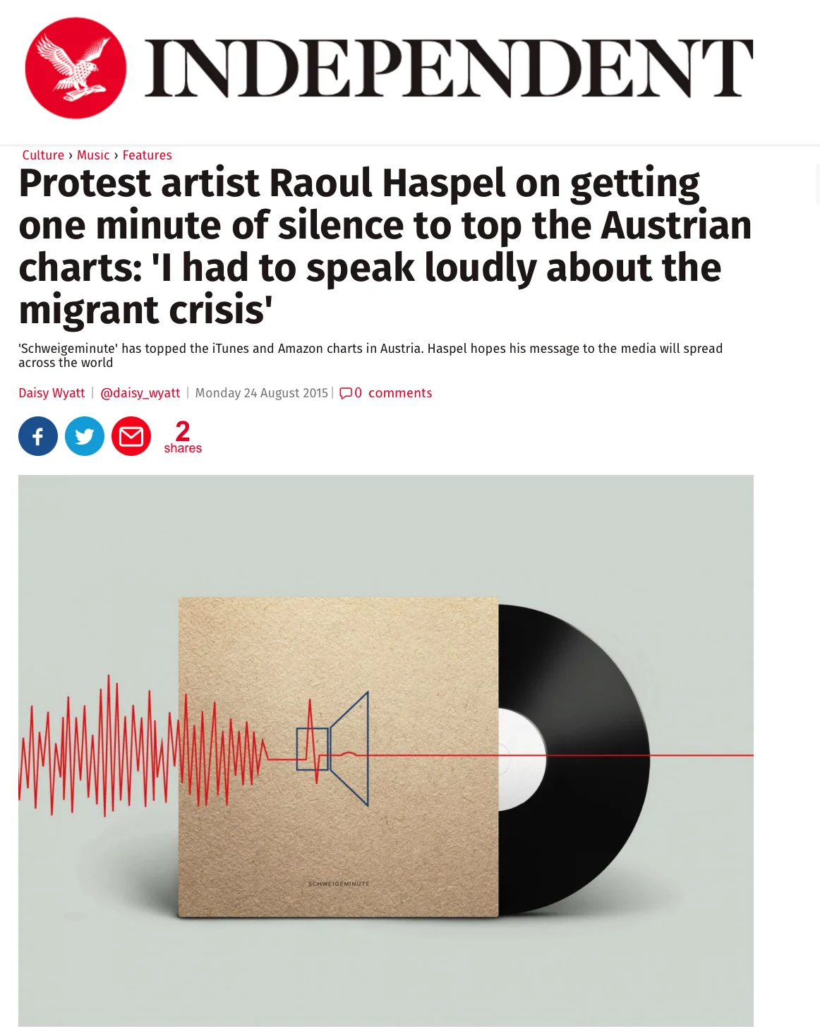 Unter dem Titel „Schweigeminute (Traiskirchen)“ rief dieser Medien-Hack zu einem friedlichen, ruhigen Protest gegen das erschütternde Versagen in der österreichischen Flüchtlings-Politik auf.